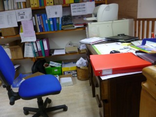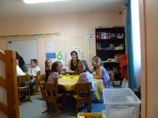 C’est là où les GS travaillent. Le matin Nathalie fait de l’art plastique avec des groupes et l’après-midi la classe sert au GS pour travailler.