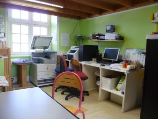 Il y a des ordinateurs pour les maîtres et les maîtresses et c’est aussi là où ils mangent le midi.
