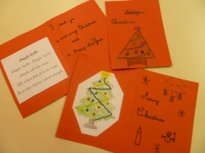 Lors de la dernière séance, on a fait une carte de Noël sur laquelle on a écrit : Merry Christmas and Happy new year.