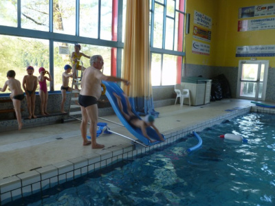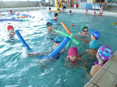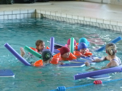 La classe de CP CE1 et les petits vont à la piscine le mardi matin. Nous prenons le car à l’école pour aller à Châteaulin. Nous partons vers 8H45.