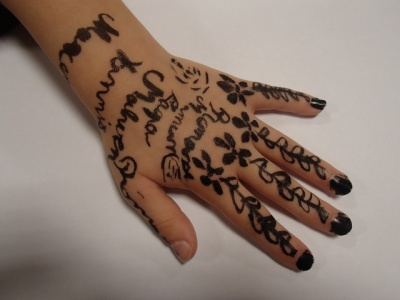 On a fini la matinée en faisant un atelier tatouage. On a commencé par regarder des photos d’une chinoise qui était mariée et avait des sortes de dents de vampire. On a aussi vu des hommes qui étaient tatoués. Leurs tatouages racontaient toute leur vie, et aussi s’ils étaient bons chasseurs. Pour les Maoris, les tatouages sur leur visage correspondent à leur carte d’identité. Ensuite, on a fait plein de tatouages sur nos bras avec du crayon noir.